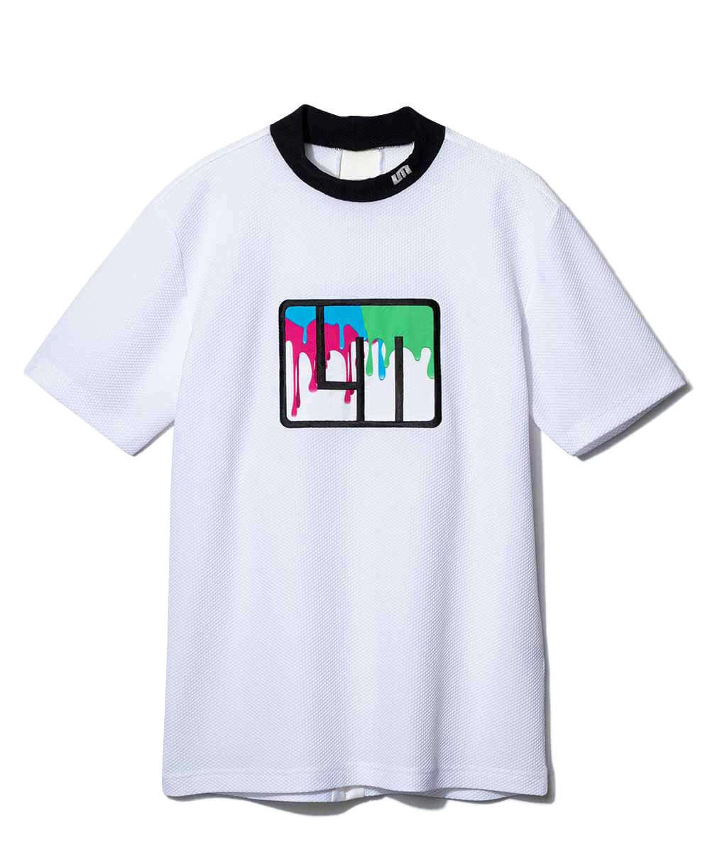A short-sleeved mock neck shirt with a refreshing and cool textured material.
